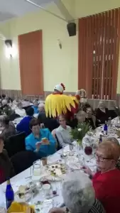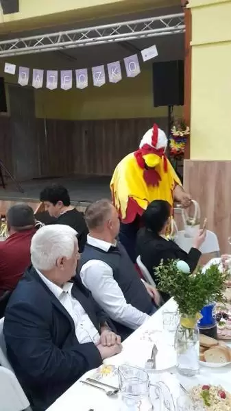 Gwiazdą wieczoru była Oliwia Bachowska, która prześlicznie zaśpiewała utwory M. Grechuty, Z. Wodeckiego, J. Steczkowskiej, Bajmu i grupy TGD. Na koniec wszystkich zaskoczyły odwiedziny Świątecznego Kogucika, który obdarował gości symbolicznymi koszyczkami wykonanymi w kwiaciarni NaturArt. Zaskoczenie i uśmiechy radości pojawiały się na twarzach naszych seniorów. To popołudnie pełne szczęścia i życzliwości bylo kolejną okazją do spotkań i rozmów w gronie sąsiadów, znajomych, a także nawiązania nowych kontaktów. Upłynęło w miłej atmosferze i wprowadziło wszystkich w nastrój nadchodzących świąt wielkanocnych.