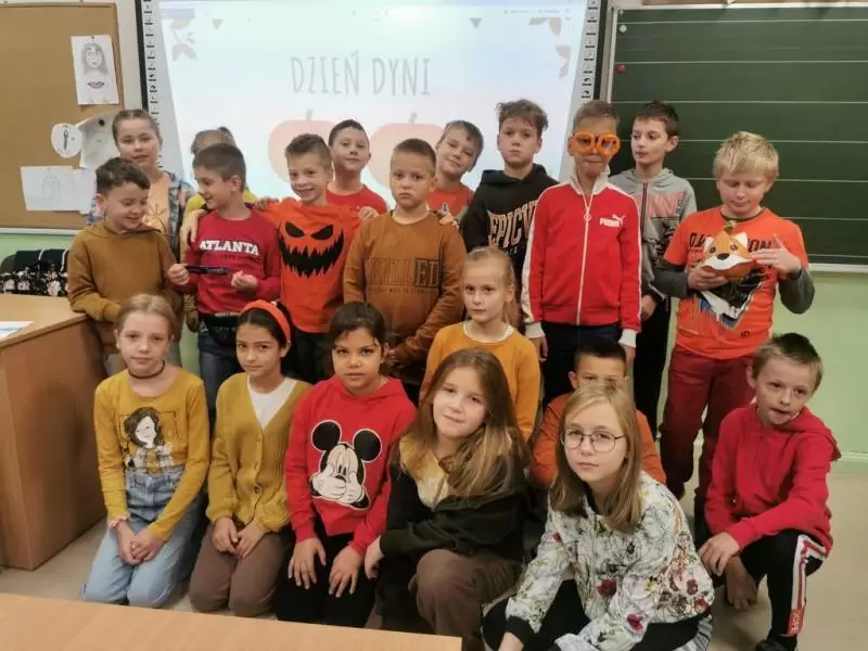 W środę w klasach i na korytarzach dominowały barwy "złotej polskiej jesieni": żółta, pomarańczowa i czerwona. Dzieci z klas I - III wzięły udział w "Dyniowych Zawodach Sportowych", przygotowanych przez nauczycielki edukacji wczesnoszkolnej.