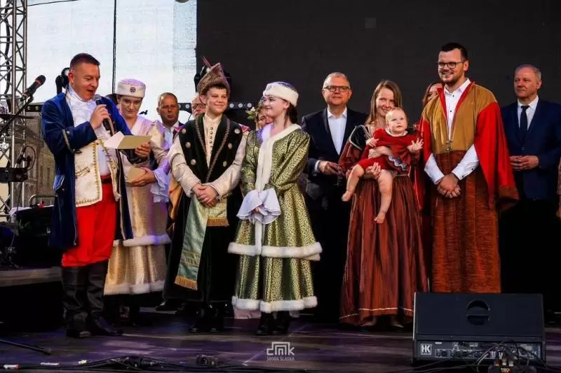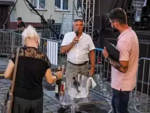 Głos na scenie zabrał wojewoda Jarosław Obremski, który również wzniósł toast za wszystkich mieszkańców Środy Śląskiej. – Niech wino płynie wartkim strumieniem, niech żyje Środa Śląska!
