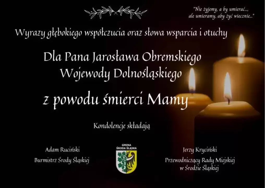 Kondolencje dla Pana Jarosława Obremskiego Wojewody Dolnośląskiego