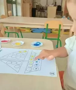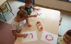 Przedszkolaki tworzyły pomysłowe prace plastyczne, liczyły kropki, bawiły się z kropką przy muzyce, uczestniczyły w aktywnościach sportowych.