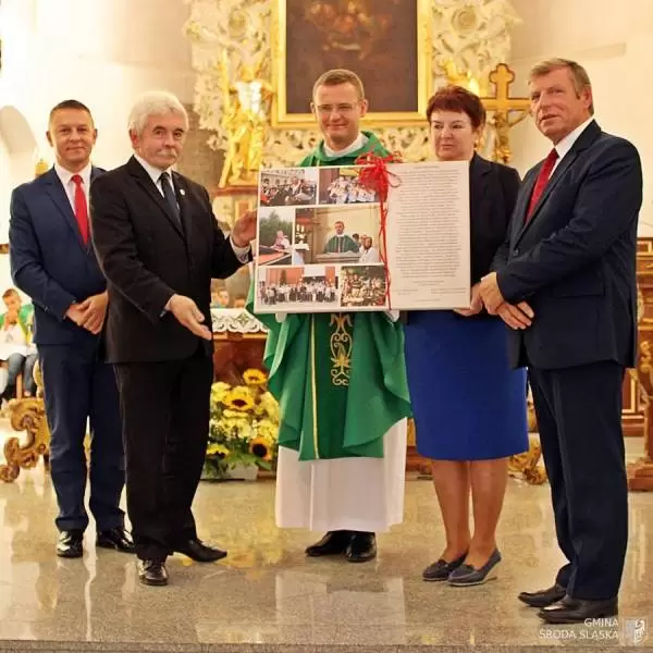Władze gminy wręczyły duchownemu tytuł „Zasłużony dla Gminy Środa Śląska”.