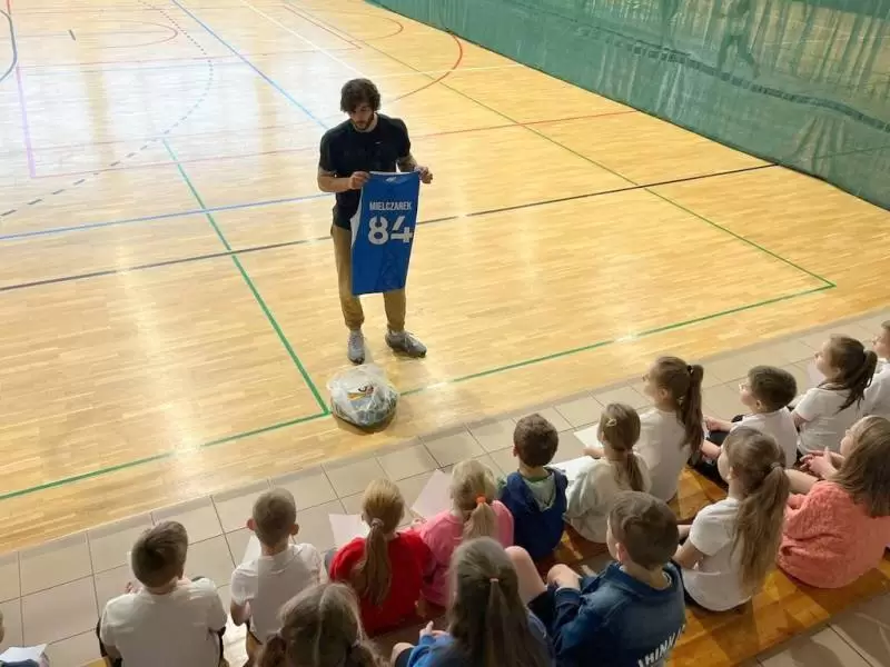 Po lekcji wychowania fizycznego z piłki koszykowej odbyło się spotkanie ze sportowcem, w czasie którego dzieci dowiedziały się wielu ciekawych rzeczy o tej dyscyplinie sportu.