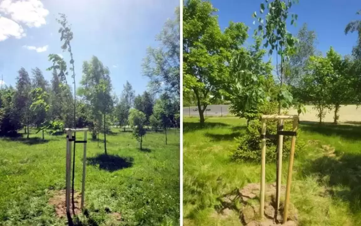 Młode lipy drobolistne posadzono przy szkole podstawowej w Ciechowie oraz w Świętem. To kolejne nowe nasadzenia w ramach umowy z firmą Urządzanie Zieleni Handel Roślinami z Legnicy.