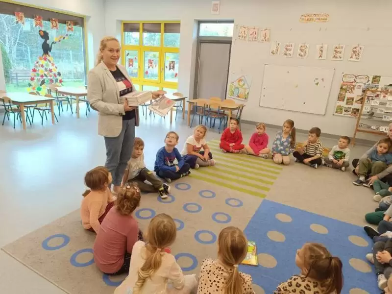 Inicjatorką udziału dzieci w projekcie była Pani Wioletta Borkowska, która trzykrotnie odwiedziła przedszkole, aby przeprowadzić z dziećmi lekcje biblioteczne. Dzieci z grup Krasnale, Jeżyki i Motylki poznały zasady korzystania z biblioteki publicznej, dowiedziały się jak mogą wypożyczyć książkę, jak dbać o książki. Każdy przedszkolak w prezencie dostał pamiątkową książkę, którą będzie mógł czytać wraz z rodzicami w domu.