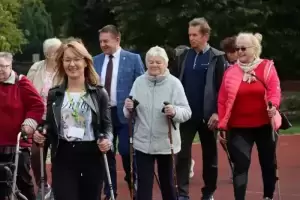 Seniorzy z Dziennego Domu Seniora, Klubu Seniora przy Centrum NGO oraz Związku Emerytów Rencistów i Inwalidów wzięli udział w pierwszej edycji Marszu Aktywnego Seniora na Stadionie Miejskim w Środzie Śląskiej. Chętnych do aktywnego spędzania czasu seniorów wspierali urzędnicy miejscy.
