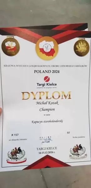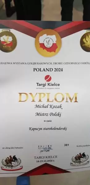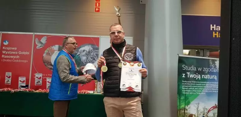Michał Kozak z Komornik w gminie Środa Śląska także z tegorocznej wystawy gołębi rasowych wrócił z tytułem Mistrza Polski w rasie kapucyn staroholenderski. Dodatkowo jeden z jego gołębi uzyskał najwyższą ocenę ze wszystkich przedstawicieli rasy i do niego powędrował tytuł Championa.