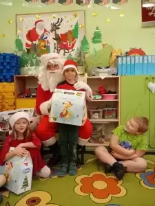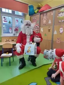 Oprócz pełnego prezentów worka Św. Mikołaj przywiózł ze sobą dużo uśmiechu. Rozmawiał z dziećmi, zachęcał ich, aby były grzeczne, słuchały rodziców i pań w przedszkolu. Na zakończenie wszystkim przedszkolakom osobiście wręczył duże paczki, a w nich dla każdego coś dobrego. Za prezenty dzieciaczki odwdzięczyły się pięknie zaśpiewanymi piosenkami.