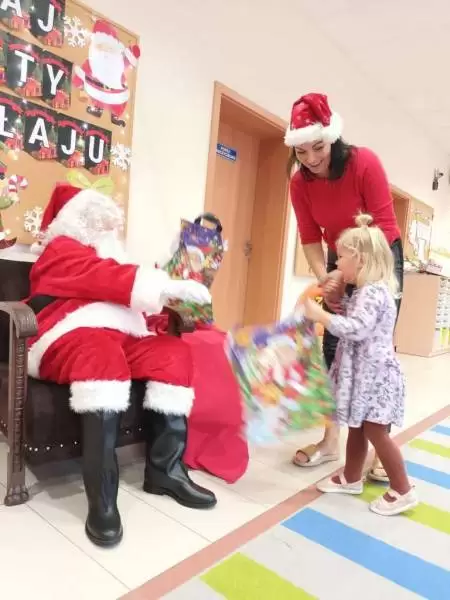 Od samego rana panowała radość i poruszenie. Przedszkolaki z wielką niecierpliwością oczekiwały przyjścia tak ważnej osobistości. Cały czas nasłuchiwały dzwonków oraz wypatrywały sań i reniferów przez okna. Wszystkie przedszkolaki przywitały Mikołaja w swoich grupach, zaśpiewały piosenkę, wyrecytowały wierszyk :) po którym Mikołaj wręczył małą niespodziankę.
