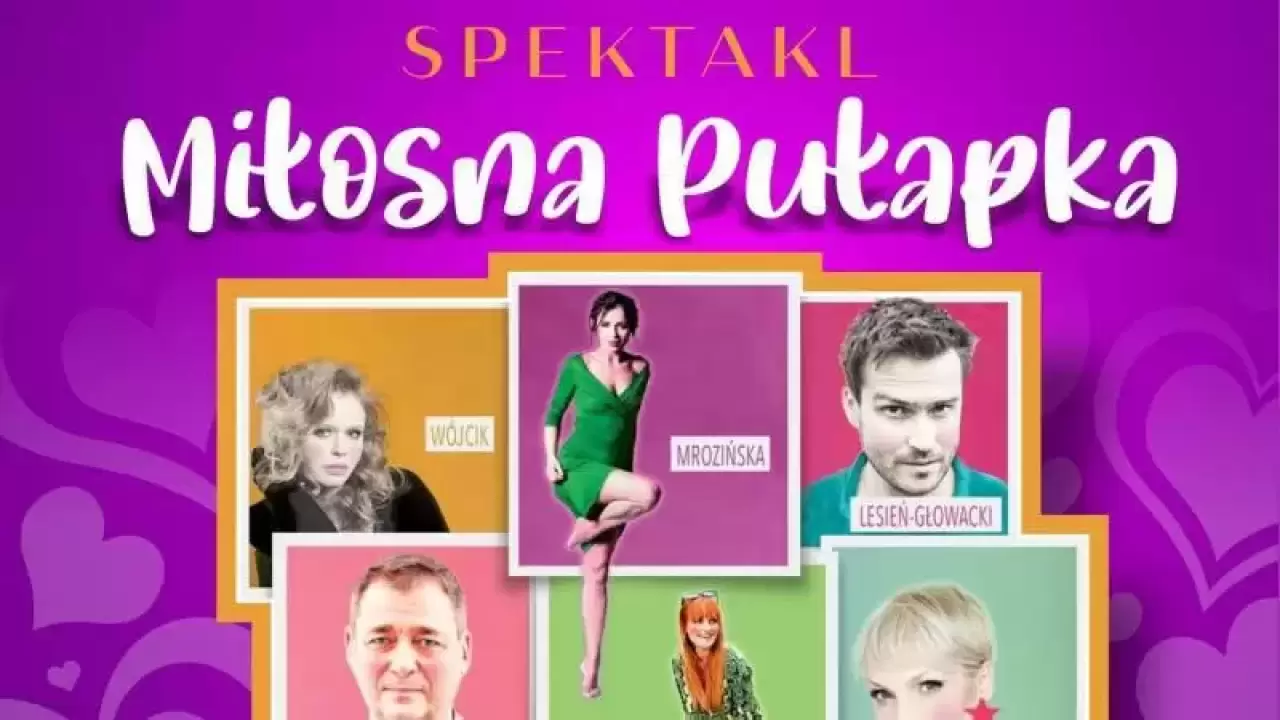 "Miłosna pułapka" to historia utalentowanej aktorki u szczytu kariery, która zmęczona ilością ciążących nad nią obowiązków decyduje się przyjąć zaproszenie do jury w amatorskim przeglądzie teatralnym. Podczas wyjazdu spotyka przystojnego architekta Pawła… Co z tego wyniknie - będzie można dowiedzieć się już 24 marca o godz. 20.00 w DK.