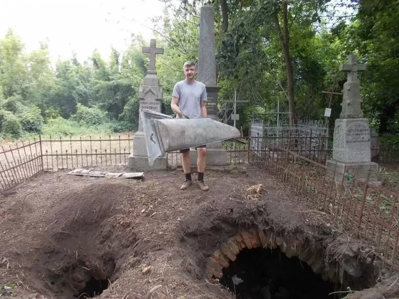 Praca na cmentarzu była niezwykle żmudna i trudna ze względu na panujące tam warunki. Był to teren o nierównym podłożu (należało uważać na doły i otwarte krypty), pełen chaszczy, porośnięty gęsto dzikim winem i samosiejkami drzew, bez żadnej ścieżki, z dziko rosnącą trawą i plątaniną wystających wszędzie korzeni. Ale za to jaka potem była satysfakcja, kiedy krok, po kroku znajdywaliśmy w tym gąszczu zieleni coraz to nowe groby i pomniki. (Znalezione zostało także metalowe wieko trumny). W miarę usuwania zielska znaleźliśmy i wydobyliśmy z ziemi 3 marmurowe pomniki z XIX wieku. Napisy na nich dobrze się zachowały, być może dlatego, że leżały latami zakopane inskrypcją do ziemi. Fakt, że wykonane były z drogiego, bardzo dobrze zachowanego kamienia świadczy o tym, że na tym cmentarzu chowano ludzi wywodzących się z polskiej arystokracji.
