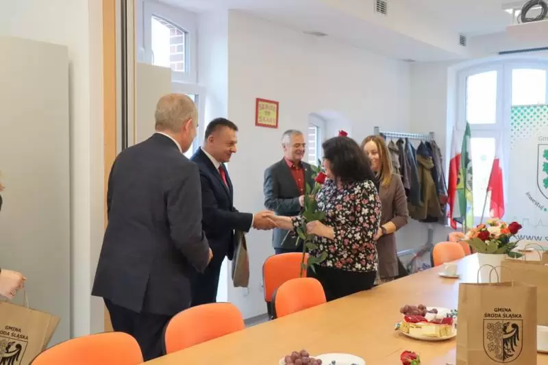 Włodarz średzkiej gminy symboliczną różą podziękował paniom dyrektor i nauczycielkom za ich wysiłek i trud wkładany w codzienną pracę z dziećmi i młodzieżą oraz życzył wytrwałości i motywacji do dalszej pracy, a także sukcesów w podejmowanych działaniach dydaktycznych i wychowawczych. Słowa uznania i życzenia w stronę pedagogów skierował także Krzysztof Peryga, dyrektor Zespołu Obsługi Placówek Oświatowych średzkiego magistratu.