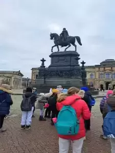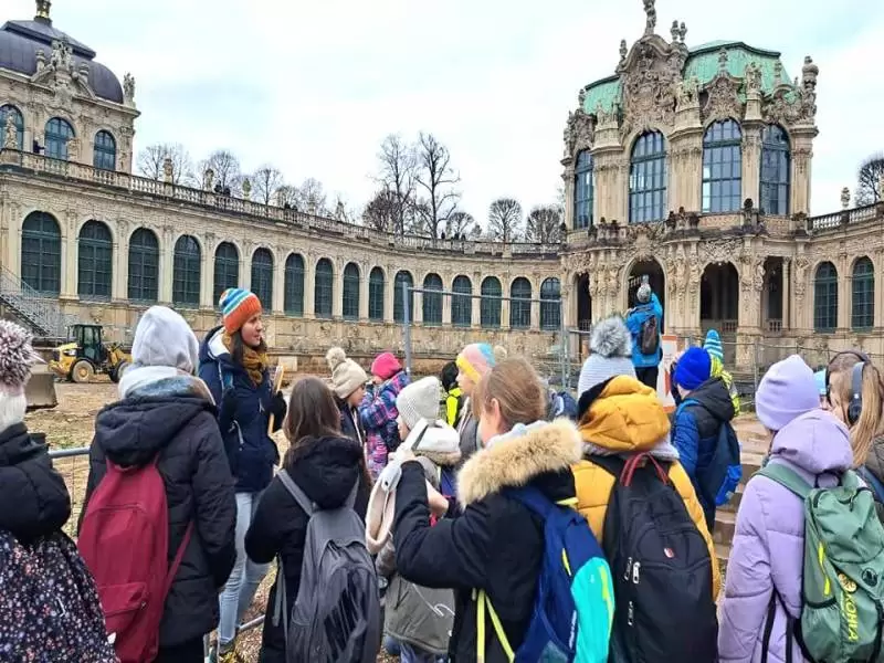 Pierwszym przystankiem w trakcie podróży było Stare Miasto. Dzięki pani przewodnik uczniowie dowiedzieli się o historii miasta, architekturze oraz o słynnych postaciach związanych z tym miejscem np. o Auguście II Mocnym oraz Auguście III Sasie czyli elekcyjnych królach Polski. Spacerując po Starym Mieście uczniowie zobaczyli Operę Sempera, ogrody Pałacu Zwinger oraz Zamek Rezydencyjny.