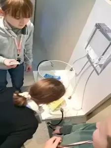 Następnie wycieczka przeszła pięknymi Tarasami Bruhla do Muzeum Higieny. Uczestniczy wycieczki zwiedzili tam wystawę główną "Abenteuer Mensch", która opowiada o człowieku, jego ciele i zdrowiu oraz o tym, jak wpływa na niego środowisko naturalne. Uczniowie zobaczyli także wiele eksponatów przedstawiających historię medycyny, które ukazują zmiany jakie zaszły w tej dziedzinie nauki na przestrzeni wieków. W Muzeum Higieny znajduje się także Kinder Museum, czyli muzeum dla najmłodszych poświęcone zmysłom. Uczniowie aktywnie spędzili czas w Muzeum Higieny także dzięki interaktywnym ekspozycjom.