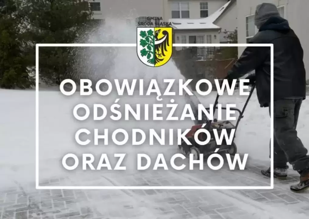 W związku z zapowiadanymi opadami śniegu oraz śniegu z deszczem Gminne Centrum Reagowania w Środzie Śląskiej przypomina o obowiązku dotyczącym usuwania jego nadmiaru z dachów budynków (zwłaszcza wielkopowierzchniowych) oraz o konieczności odśnieżania chodników.