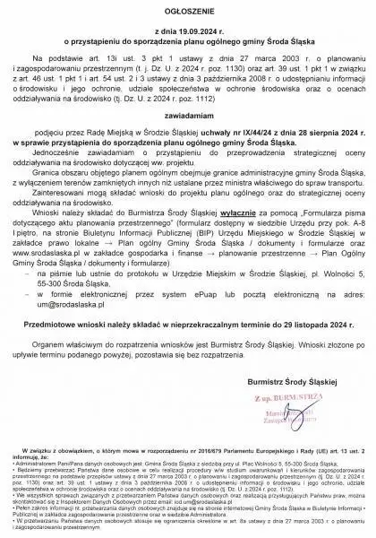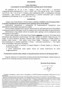 Ogłoszenie o przystąpieniu do sporządzenia planu ogólnego gminy Środa Śląska