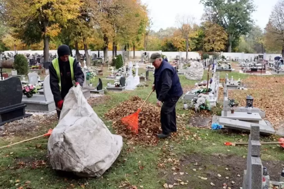 Pracownicy gminnej spółki koszą trawę i grabią liście. - Porządkowe prace na cmentarzu wykonujemy tuż przed dniem Wszystkich Świętych, aby cmentarz był uporządkowany, kiedy mieszkańcy przyjdą 1 listopada odwiedzać groby zmarłych – wyjaśnia Marian Sujecki, który bezpośrednio zarządza działem zieleni w OSiR.