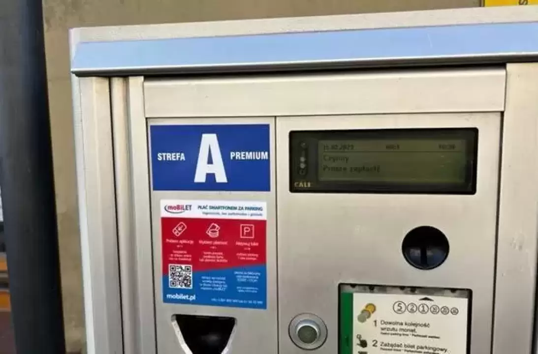 Oznaczony parkomat dla strefy A przy wejściu do DK. Podobne naklejki pojawiły się na parkomatach dla strefy B.
