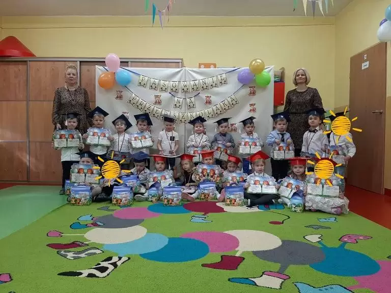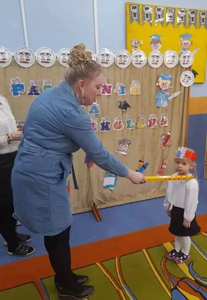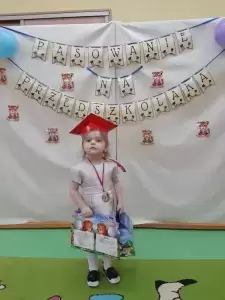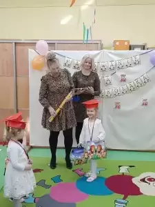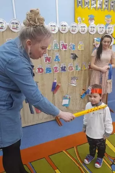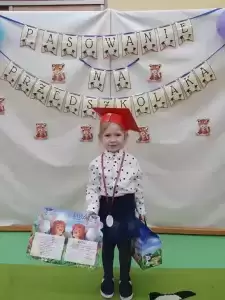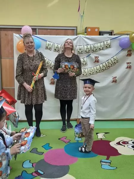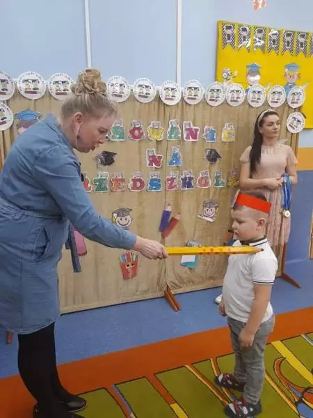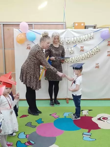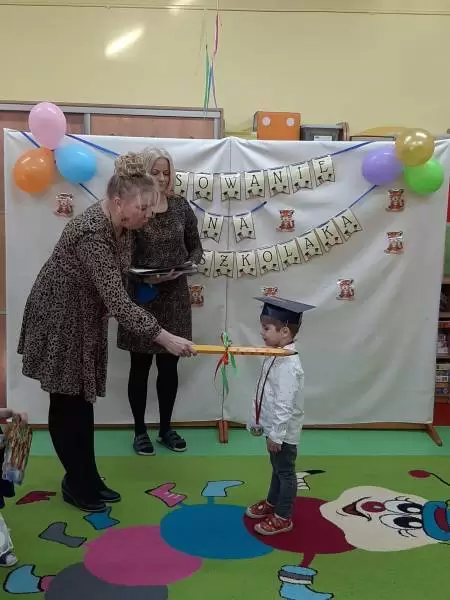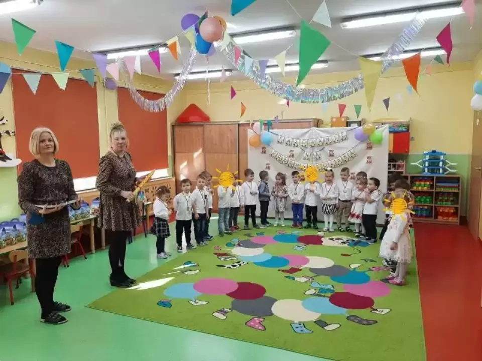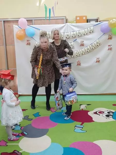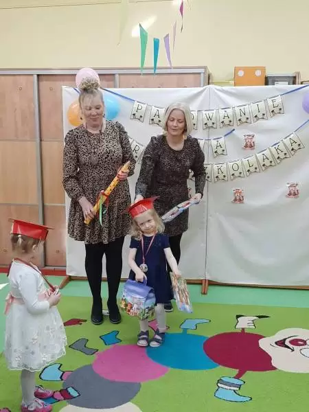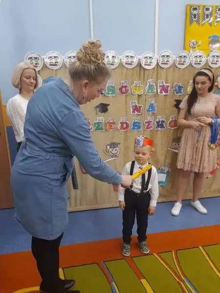 Na pamiątkę tego ważnego wydarzenia, każdy przedszkolak otrzymał dyplom, medal oraz słodki upominek wręczany przez panią wicedyrektor Małgorzatę Abel oraz panie wychowaczynie Angelikę Pelę, Annę Strzelecką i Annę Mazurek.