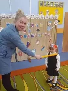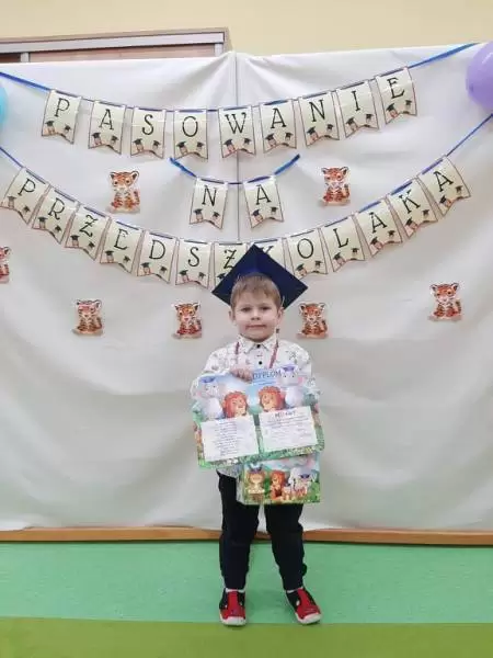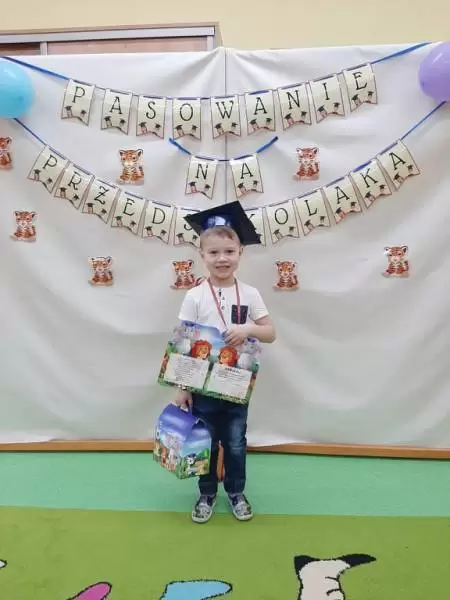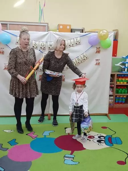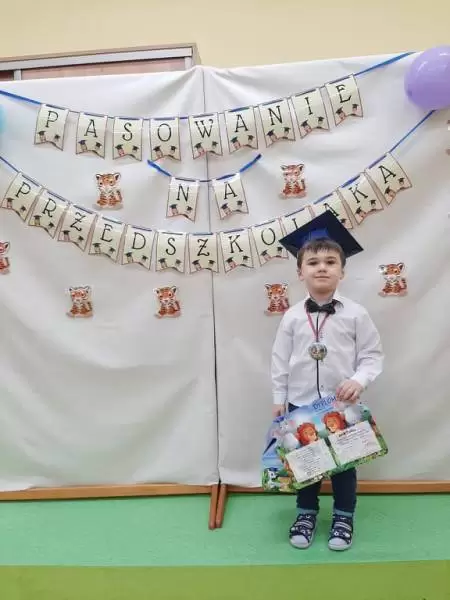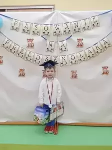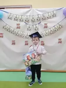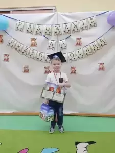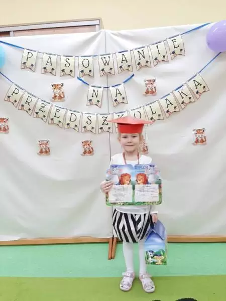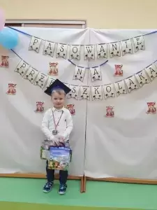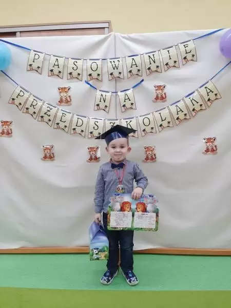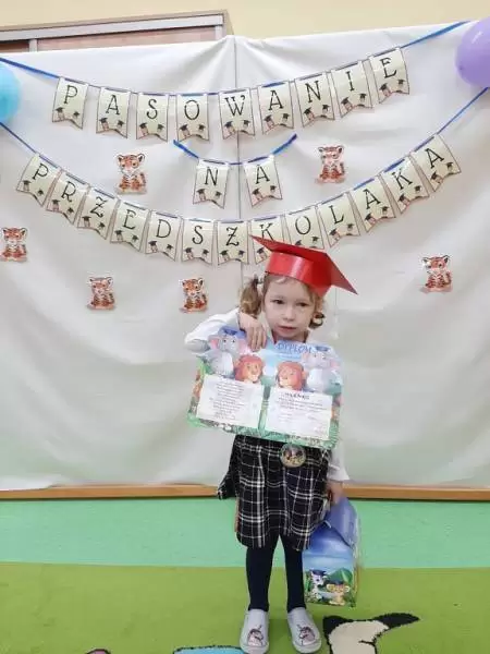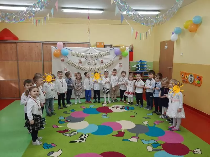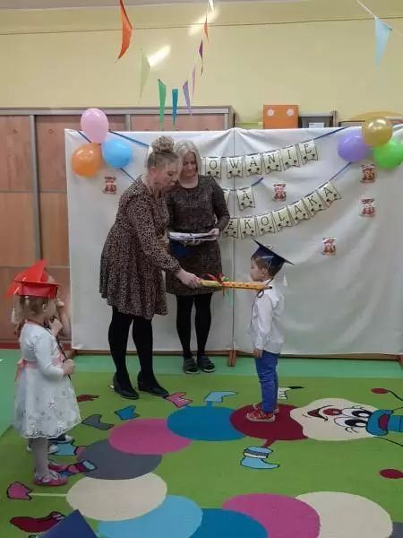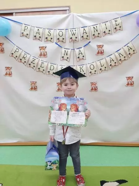 Na pamiątkę tego ważnego wydarzenia, każdy przedszkolak otrzymał dyplom, medal oraz słodki upominek wręczany przez panią wicedyrektor Małgorzatę Abel oraz panie wychowaczynie Angelikę Pelę, Annę Strzelecką i Annę Mazurek.