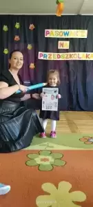 Zanim to nastąpiło, dzieci pokazały ile się już nauczyły. Zatańczyły, zaśpiewały, powiedziały wierszyk. Pani dyrektor Aleksandra Karcz-Cieśla pasowała każde dziecko do rangi przedszkolaka.