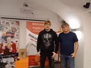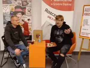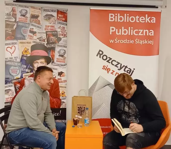 W piątek 1 października w średzkiej bibliotece odbyło się spotkanie z Alkiem Rogozińskim, pisarzem, twórcą komedii kryminalnych i powieści obyczajowych, jak mówi sam o sobie: „ Z zawodu dziennikarz, z pasji kryminalista… to znaczy – twórca kryminałów”.