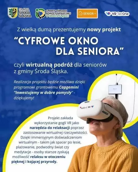 Za nami pierwsze spotkanie inaugurujące projekt "Cyfrowe okno dla Seniora" i… pierwsze wirtualne podróże! Seniorzy z Gminy Środa Śląska mieli okazję przetestować nowoczesne gogle VR TierOne, które - dzięki firmie Capgemini Polska i wsparciu Gminnego Ośrodka Pomocy Społecznej w Środzie Śląskiej - trafiły do Dziennego Domu „Senior+”.
