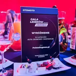 Poleasingowe.pl zostało wyróżnione za wysoką jakość ogłoszeń w konkursie "Liderzy Jakości" organizowanym przez platformę OTOMOTO.pl w kategorii samochody dostawcze i osobowe. To wyróżnienie potwierdza zaangażowanie marki w dostarczanie klientom pojazdów poleasingowych najwyższej jakości.