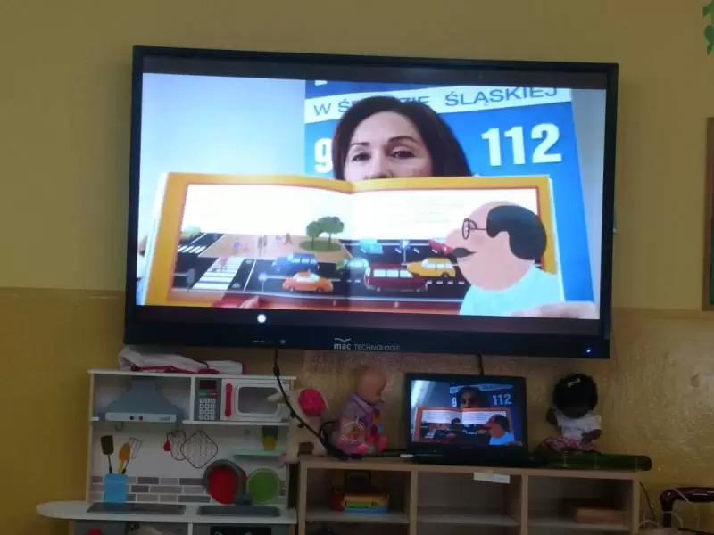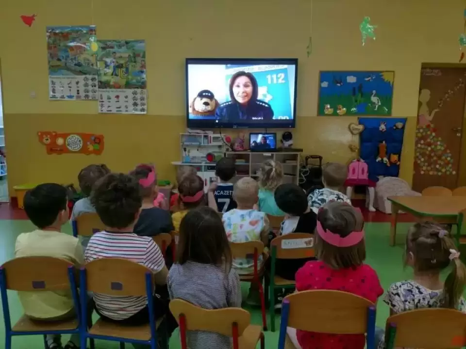 Policjantka zaprezentowała przedszkolakom z grupy Motylki książeczkę pt. "Na ulicy". Spotkanie, które odbyło się za pomocą smart urządzeń było oczywiście doskonałą okazją do przypomnienia podstawowych zasad bezpieczeństwa na drodze.