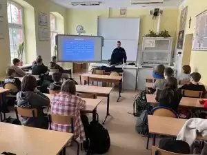 Średzcy dzielnicowi przeprowadzili kolejne spotkanie z dziećmi na rzecz poprawy bezpieczeństwa w ruchu drogowym w ramach programu edukacyjno-informacyjnego Komendy Powiatowej Policji w Środzie Śląskiej pn.: "Bezpieczeństwo to skarb". Tym razem funkcjonariusze odwiedzili uczniów Szkoły Podstawowej w Ciechowie.