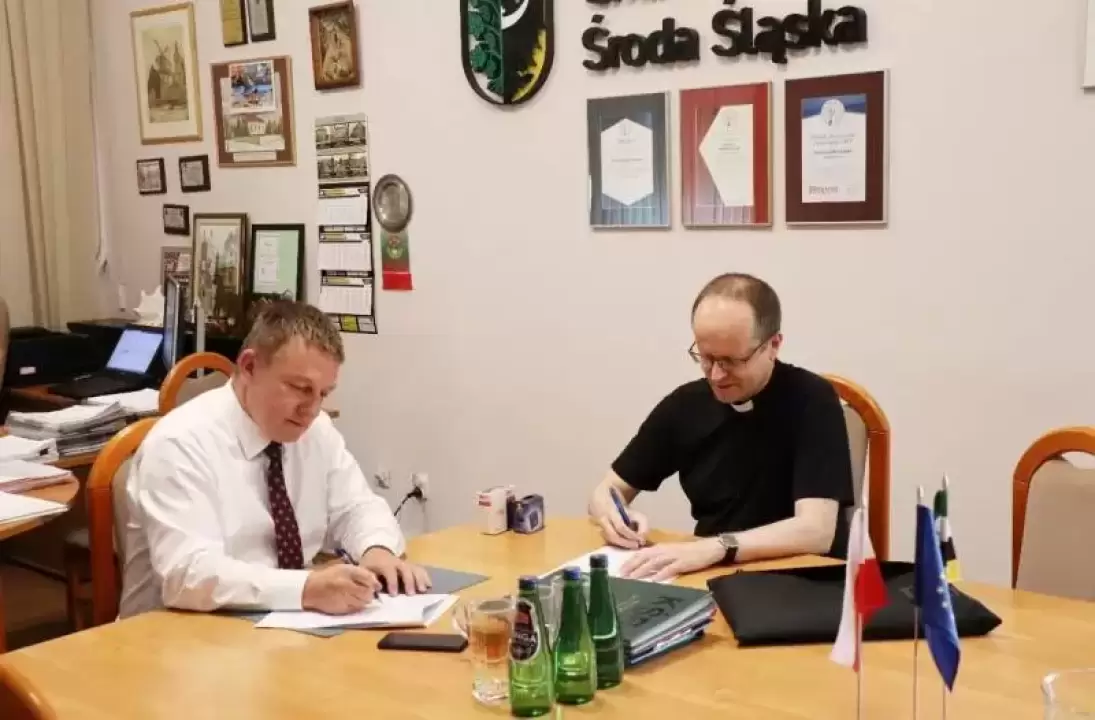 28 czerwca burmistrz Adam Ruciński podpisał umowę dotacji dla Towarzystwa Salezjańskiego Dom „Świętego Krzyża” w Środzie Śląskiej z dyrektorem placówki ks. Marcinem Kozyrą na organizację dwóch półkolonii dla dzieci i młodzieży z elementami profilaktyki uzależnień.