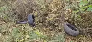W listopadzie br. mieszkańcy Jugowca i Chwalimierza zauważyli, że na drodze polnej pomiędzy tymi dwoma miejscowościami ktoś wyrzucił 77 opon...
