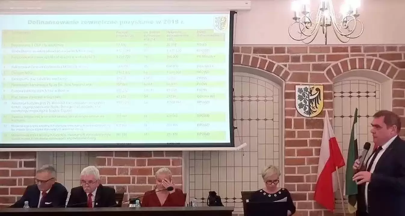 W ramach prezentacji Raportu o stanie gminy za 2018 rok, na sesji Rady Miejskiej 30 maja br. kierownik Wydziału Promocji i Rozwoju Gminy Jaromir Stawirej zaprezentował sukcesy i skuteczność Urzędu Miejskiego w pozyskiwaniu i kontraktowaniu dotacji z Unii Europejskiej i programów rządowych na zadania inwestycyjne i projekty miękkie w 2018 roku.