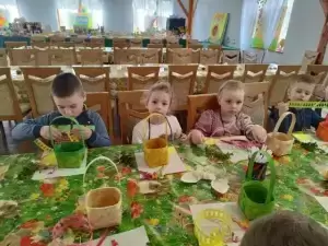 Podczas zajęć dzieci ozdabiały wielkanocne zające, kurczaczki i jajka. Zdolności plastyczne i manualne, to mocna strona naszych przedszkolaków. Za pomocą różnorodnych materiałów w mig stworzyły piękne ozdoby, aby z dumą zabrać je w prezencie do domu. Wspólne warsztaty wspaniale pobudzają wyobraźnię i angażują do wspólnej aktywności. Nie zabrakło też czasu na wspólną zabawę i tańce.