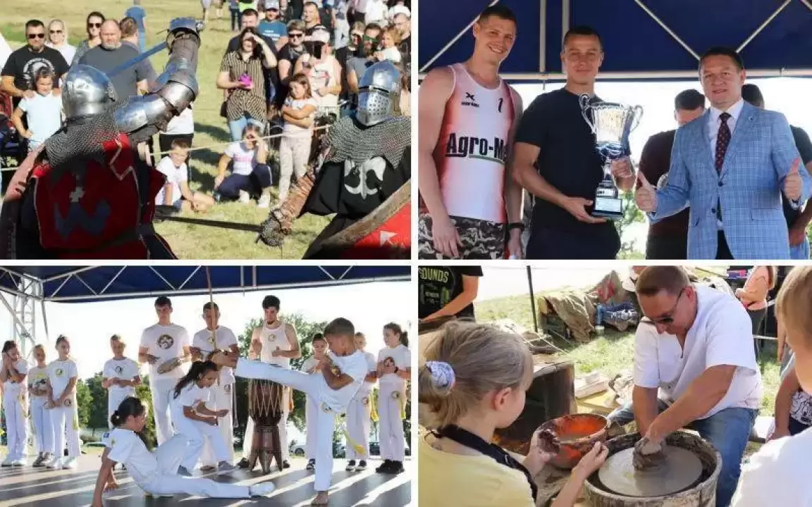 Od rana na pobliskich boiskach toczyły się również zawody: piłki nożnej dla skrzatów i żaków oraz siatkówki dla starszych. Wszyscy zawodnicy otrzymali od burmistrza medale, a te najlepsze również puchary.
