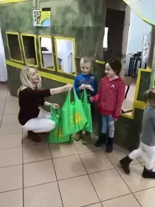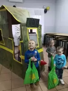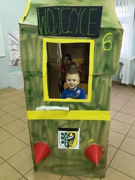 Dzieci korzystające ze świetlicy wiejskiej w Wojczycach, pod czujnym okiem swoich opiekunek, przygotowały prezent dla Średzkiej Komunikacji Publicznej.