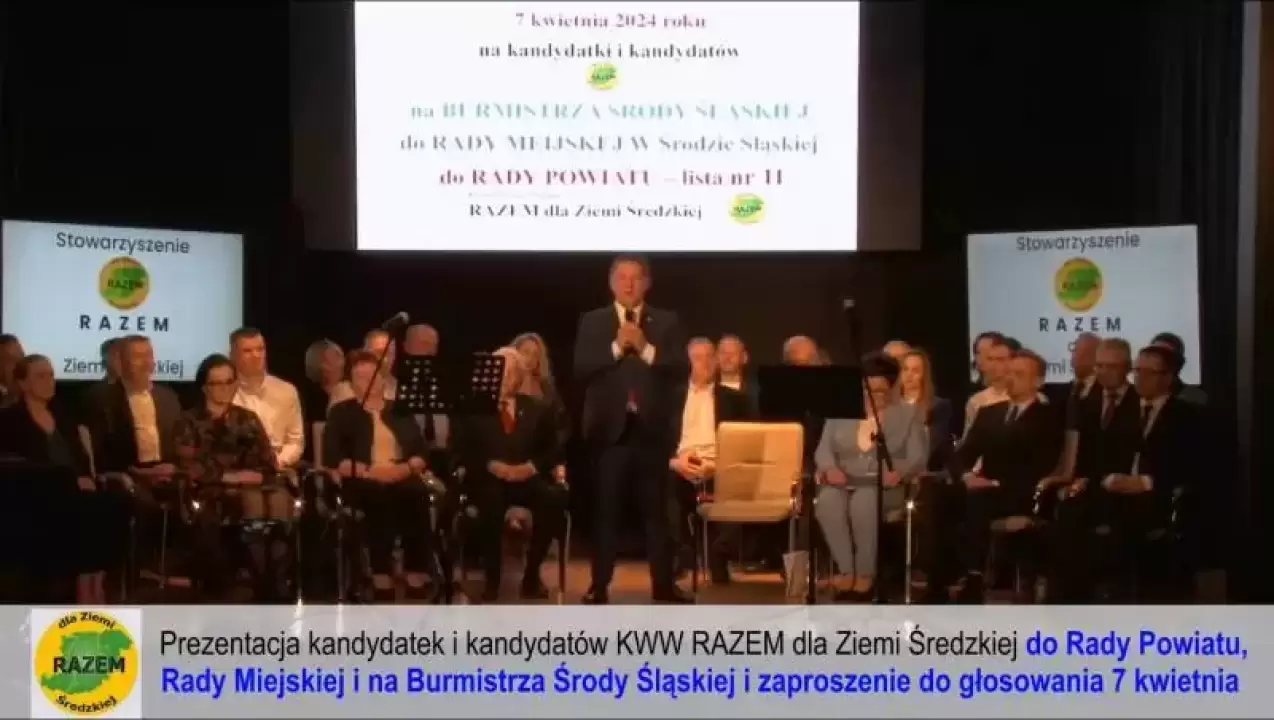 Prezentacja kandydatek i kandydatów KWW RAZEM dla Ziemi Średzkiej do Rady Powiatu, Rady Miejskiej i na Burmistrza Środy Śląskiej i zaproszenie do głosowania 7 kwietnia.