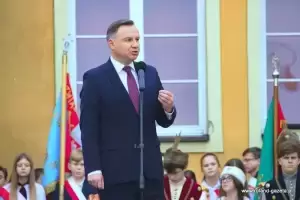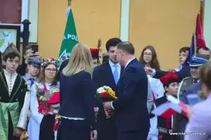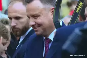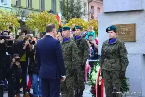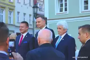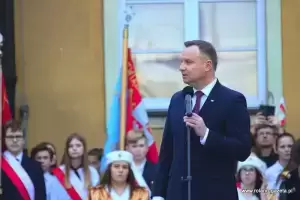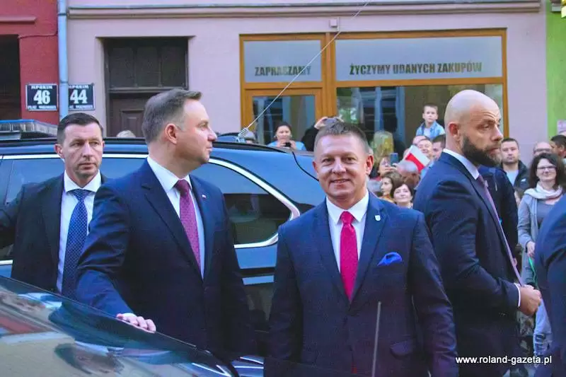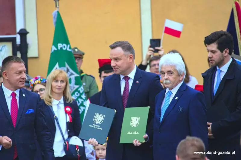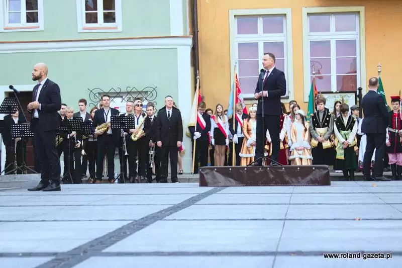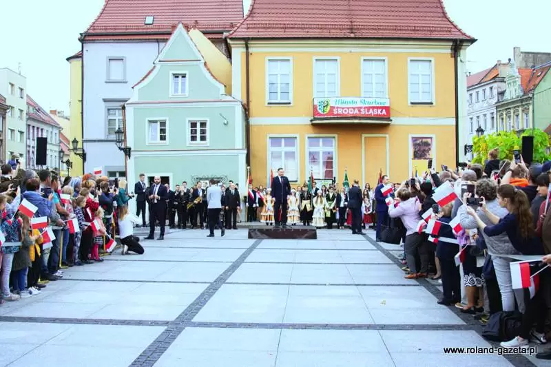Następnie nadszedł czas na oczekiwane przemówienie prezydenta. - Jest to dla mnie zaszczyt być przyjętym w poczet Państwa wspólnoty decyzją władz miasta. To wielkie wyróżnienie (...) ze względu na to, jakim miastem jest Środa Śląska - dziękował Andrzej Duda. – Jestem urodzony i wychowany w Krakowie. Środa Śląska jest miastem starszym. Zawsze czuję wielki respekt, gdy w naszym kraju przyjeżdżam do miejsc, które swoją miejską historię mają dłuższą, niż moje. Środa powstała, kiedy te ziemie do Polskiego Królestwa wcielił Bolesław Chrobry, koniec X wieku. Potem miasto rozwijało się pod rządami polskich władców. To właśnie Henryk Brodaty nadał Środzie Śląskiej prawa miejskie – przytaczał historyczne fakty prezydent, który zmieniając temat dziękował za liczną frekwencję w wyborach do polskiego sejmu i senatu w bieżącym roku. - Rzeczywiście frekwencja, jak na standardy Rzeczypospolitej do tej pory, była niebywała. Jestem ogromnie wdzięczny. To pokazuje, że ludzie w naszym kraju czują odpowiedzialność za polskie sprawy. Miałem wielki moment radości, kiedy tę frekwencję ogłoszono. (…) To jest Państwa ogromna zasługa, że zechcieliście do tych wyborów pójść, wskazać swoje preferencje i właściwych kandydatów, którzy będą rządzić krajem - stwierdził. - Nie ukrywam, że dotychczasowy mandat zjednoczonej prawicy, aby rządzić w Polsce został umocniony kolejny raz poprzez samodzielną większość w sejmie. Jestem za to wdzięczny, ponieważ wiele elementów programu, które powinny być jeszcze zrealizowane wymagało kolejnej kadencji. Mam nadzieję, że zobaczycie Państwo szybko tego efekty. (...) Ważne jest, by Polska utrzymała dotychczasowy kurs wzrostu gospodarczego, dobrego zbierania podatków, a więc uczciwości w życiu publicznym. To jest niezwykle ważne. Przecież do niedawna, do 2015 roku, zanim nie została stworzona Krajowa Administracja Skarbowa, ktoś nas z tych pieniędzy okradał – mówił prezydent. - Dzisiaj z tego VAT-u wypłacane jest 500+, z tego VAT-u można było wypłacić 13. emeryturę czy 500 zł dla niepełnosprawnych. To z tych pieniędzy, którymi wreszcie zaczęto dobrze gospodarować. Chciałbym, żeby taka polityka była realizowana dalej - podkreślał. - Wierzę, że będziemy podwyższać płace tam, gdzie nie zostały jeszcze podniesione. Była podwyżka dla policji, jest podwyżka dla żołnierzy w tej chwili, chciałbym żebyśmy zdołali także podwyższyć pensje nauczycielom. Chciałbym abyśmy zadbali również o inne grupy zawodowe, które są utrzymywane z budżetu państwa. To są ogromne kwoty, bardzo trudne zadanie. (...) Mam nadzieję, że przy dobrym działaniu gospodarczym będziemy w stanie to zrealizować – tłumaczył. - Właśnie tu w Środzie Śląskiej, akcentuję to tak silnie, bo tu jest dobrze prowadzona gospodarka. Gratuluję, że jest tutaj tak świetnie rozwijająca się podstrefa strefy ekonomicznej. To jest oszałamiające wrażenie, kiedy wjeżdża się do miasta i widzi te wszystkie nowoczesne zakłady pracy – mówił Andrzej Duda.