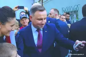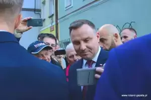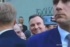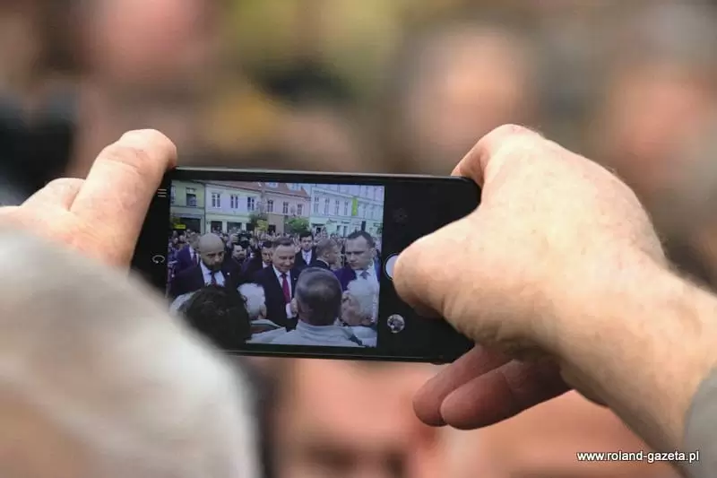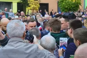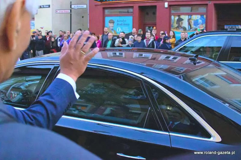Na zakończenie wizyty w naszym mieście prezydent podchodził do zgromadzonych w pobliżu osób, z którymi witał się, rozmawiał i pozował do wspólnych zdjęć.
