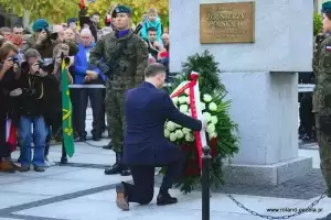 Wydarzenie rozpoczęto od złożenia wieńca pod pomnikiem "Pamięci Żołnierzy Polskich". Prezydent, w asyście żołnierzy 10. Wrocławskiego Pułku Dowodzenia, złożył hołd poległym w obronie ojczyzny. Kolejnym punktem były wystąpienia.