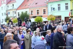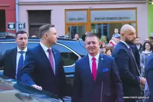 - Pragnę serdecznie podziękować Panu Prezydentowi za przyjęcie czerwcowego zaproszenia do Środy Śląskiej, do Miasta Skarbów. Bardzo się cieszymy, że Ziemia Średzka została zauważona przez Pana Prezydenta i stanowi jeden z wielu przystanków w Polsce na drodze do budowania wspólnoty Polaków – witał prezydenta burmistrz Środy Śląskiej Adam Ruciński. Włodarz miasta mówił także o sukcesach i modernizacji miasta. - Środa Śląska, to miasto o bogatej historii oraz tradycji, sięgających czasów średniowiecza. W ciągu ostatnich 30 lat dokonaliśmy daleko idącej transformacji. To miasto sukcesu. Stawiamy na inwestycje, innowacje i ekomobilność. W ubiegłym roku dzięki środkom z Unii Europejskiej od postaw stworzyliśmy Średzką Komunikację Publiczną. Jest to miasto, które jest w czołówce krajowej i dolnośląskiej. Potwierdzeniem tego jest trzecie miejsce w Polsce wśród miast powiatowych w inwestycjach na jednego mieszkańca w latach 2016-2018 r., jakie to zdobyliśmy w rankingu opublikowanym i ogłoszonym w Katowicach dwa tygodnie temu na kongresie samorządowym. Przed nami wśród miast powiatowych są tylko Polkowice i Zakopane. My nie mamy kompleksów, rozwijamy naszą małą ojczyznę w oparciu o konsensus, dobre zarządzanie, aktywność naszych mieszkańców i przedsiębiorców. Często jest to działanie ponad podziałami bez barw partyjnych – podkreślał Adam Ruciński.
