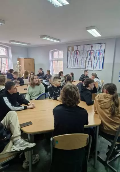 Przy współpracy z Powiatową Stacją Sanitarno-Epidemiologiczną w Środzie Śląskiej uczniowie wzięli udział w warsztatach, podczas których wysłuchali prelekcji pracownika PSSE oraz mieli możliwość założenia specjalnych okularów – NARKOgogli i ALKOgogli, które symulują skutki używania narkotyków, czy alkoholu.