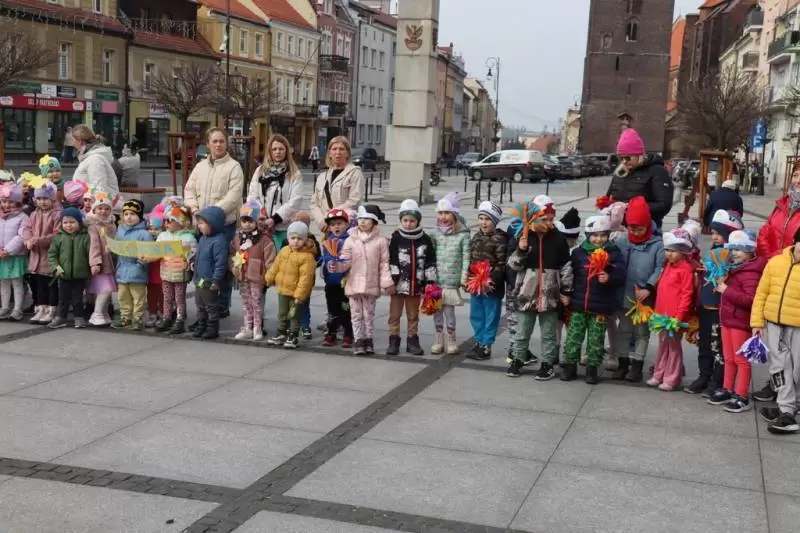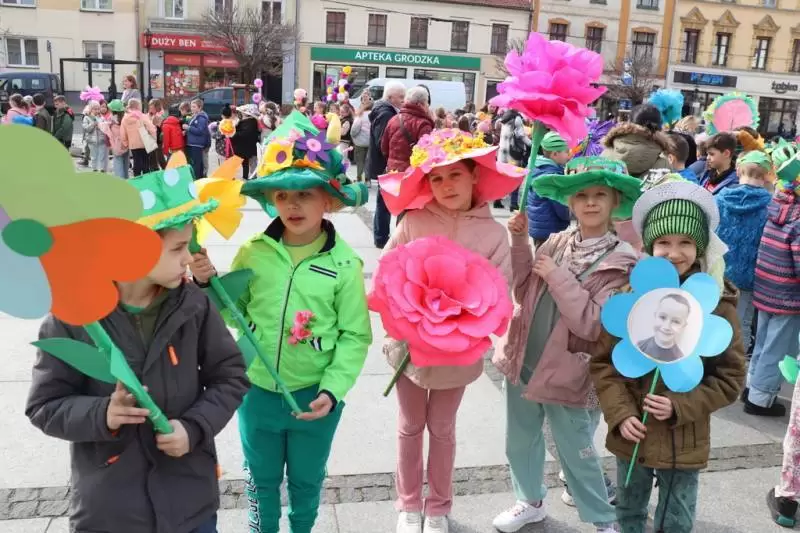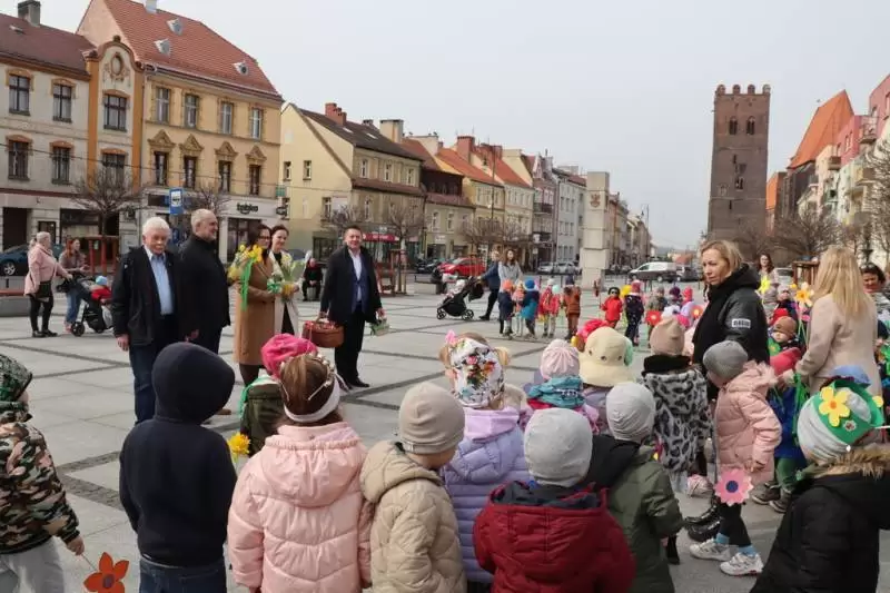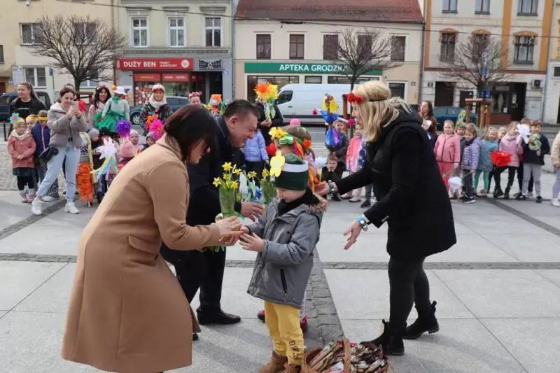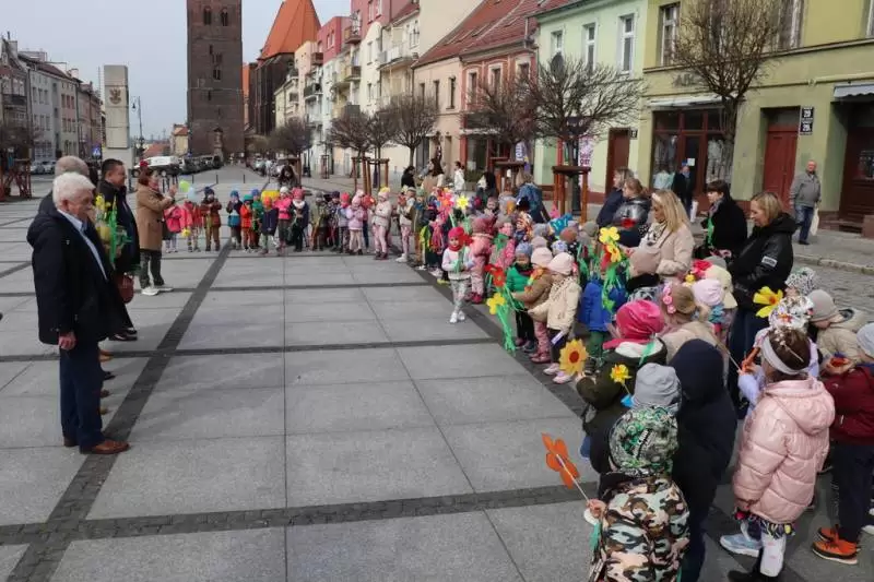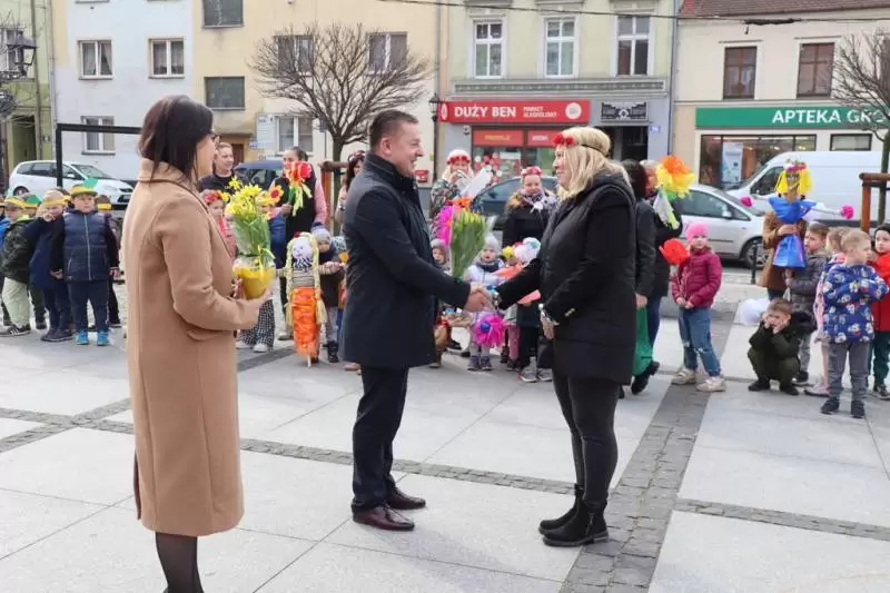 Wiosna nadeszła, a wraz z nią radość i śmiech przedszkolaków i uczniów ze szkoły podstawowej, którzy wraz z burmistrzem Adamem Rucińskim, Przewodniczącym Rady Miejskiej Jerzym Krycińskim i Sekretarz Gminy Judytą Partyka-Basa postanowili przywitać tę piękną porę roku. Wczesnym rankiem grupa dzieci zgromadziła się na głównym placu średzkiego rynku, trzymając w rękach kolorowe kwiaty i wianki.