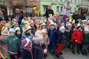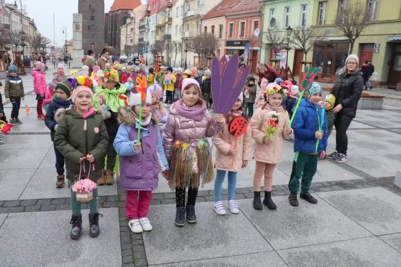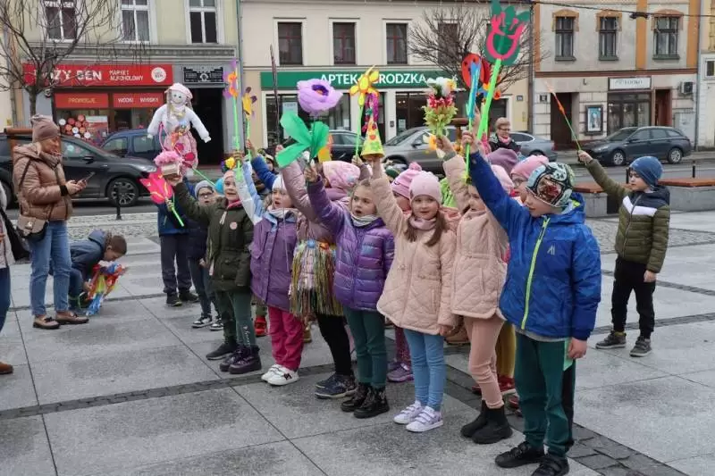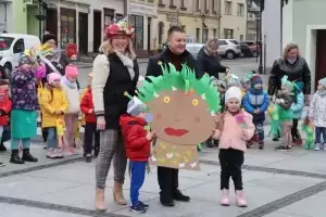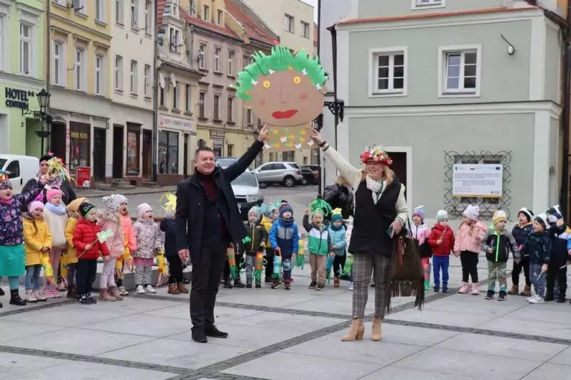 Dzieci z Przedszkola nr 3 „Pod Topolą” wraz z dyrektor Aleksandrą Karcz-Cieślą i wychowawcami przywitały się z burmistrzem Adamem Rucińskim i sekretarz Gminy Judytą Partyką-Basą, po czym powiedziały wierszyki przywołujące wiosnę. Następnie zaśpiewały piosenkę „Maszeruje wiosna”. Przedszkolaki wręczyły też włodarzowi kwiaty symbolizujące początek kalendarzowej wiosny.
