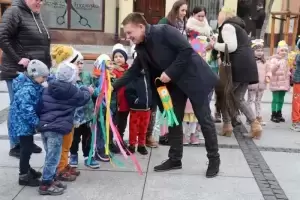 Dużo hałasu zrobiły na Rynku Dolnym dzieci z Przedszkola nr 1, które wraz z dyrektor Bogusławą Hryńczak i wychowawcami głośno wołały wiosnę, aby na pewno usłyszała i szybko przyszła do Środy Śląskiej. Przedszkolaki podarowały burmistrzowi „Panią Wiosnę”. Włodarz podziękował dzieciom za odwiedziny i życzył im w nadchodzących dniach wiele słońca, które jest jednym z pierwszych sygnałów nadchodzącej wiosny. Poczęstował też słodkościami wszystkie dzieci, które przyszły dziś na Rynek szukać wiosny.