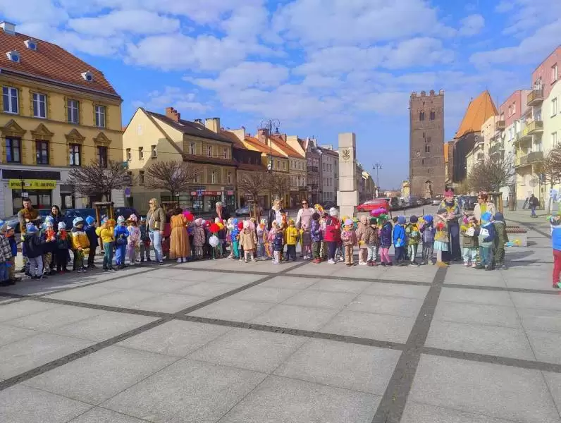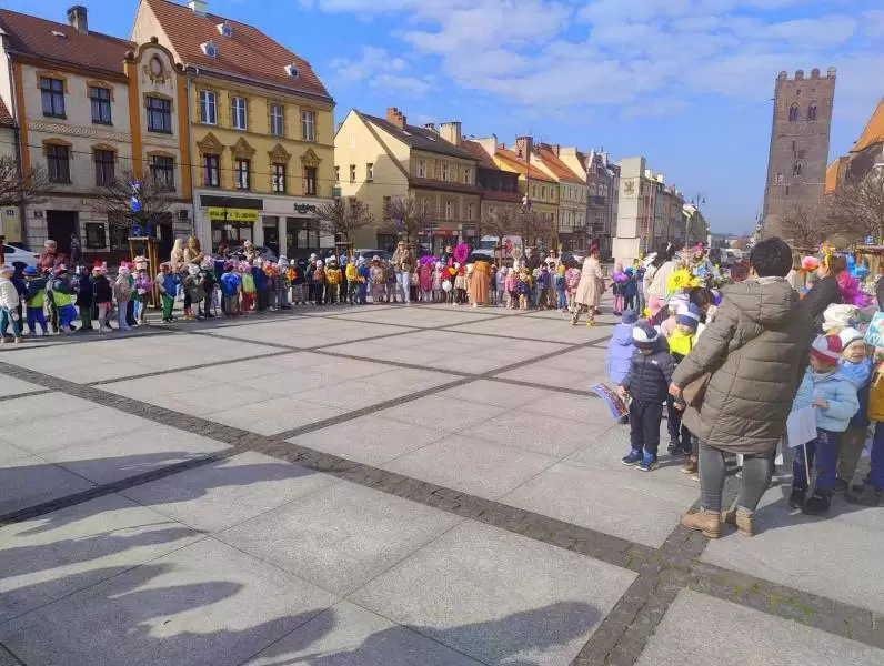 W piątkowe przedpołudnie średzki rynek zamienił się w barwną krainę radości i śmiechu. Wszystko za sprawą najmłodszych mieszkańców miasta, którzy wspólnie z nauczycielami i opiekunami wyruszyli na wiosenny pochód, by tradycyjnie powitać nową porę roku.