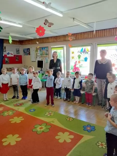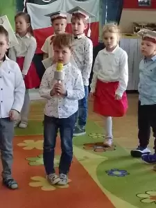 W tym ważnym dniu przedszkolaki z wielką powagą przyjmując postawę "na baczność" odśpiewały Hymn Polski "Mazurka Dąbrowskiego", recytowały wiersze, śpiewały piosenki o tematyce patriotycznej i zatańczyły dwa tańce.