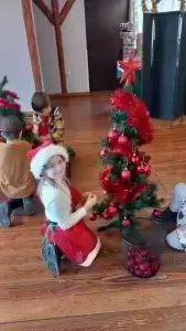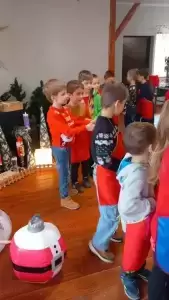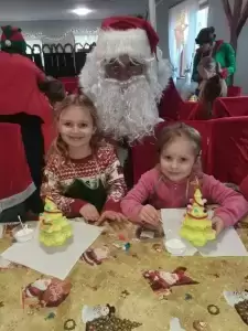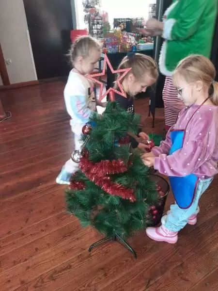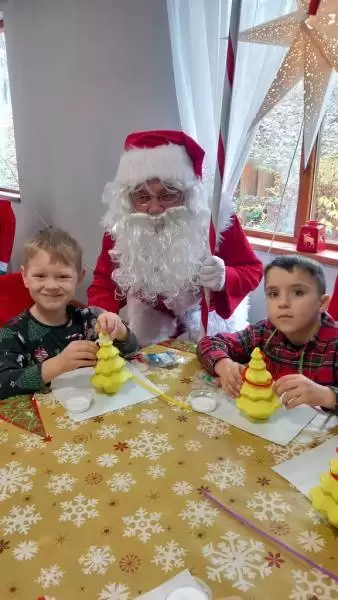 W trakcie warsztatów dzieci stworzyły naturalną świeczkę z wosku pszczelego oraz ozdabiały świąteczną choinkę. Każdy mógł ozdobić tak jak podpowiadała mu wyobraźnia. Dekorowana była także świąteczna torebka, do której spakowane zostały wszystkie upominki. Podczas spotkania był czas na wspólne zdjęcia, na napisanie listu do Mikołaja oraz wspólne tańce! W przerwie dzieci popijały świąteczną herbatkę, a w tle słychać było świąteczne przeboje.