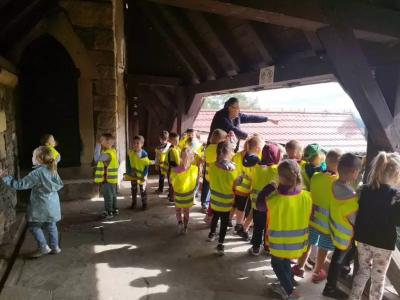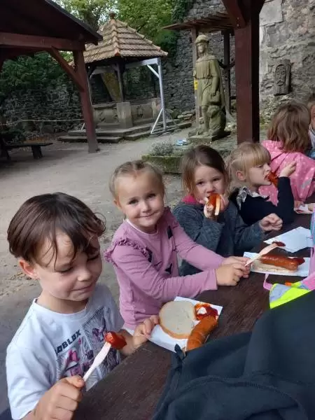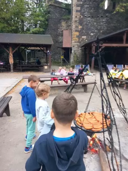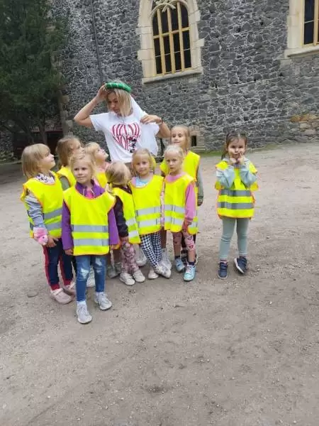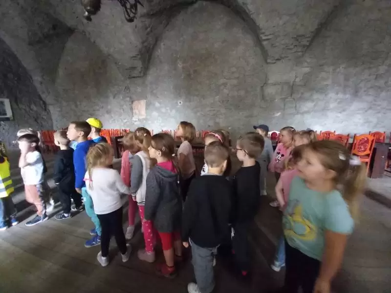 Zwiedzanie Zamku to szansa na poznanie historii i wielu legend związanych z twierdzą. Dzieci stojąc w cieniu tych gigantycznych budowli, mogły wyobrazić sobie jak wyglądało życie w czasach rycerzy i księżniczek. Pan Przewodnik, z wielkim zaangażowaniem wyjawił Nam wiele tajemnic Zamku, oprowadził po salach, komnatach, wąskich korytarzach a nawet pokazał gdzie znajdował się skarbiec! Dzieci zadawały pytania, mogły przymierzyć rycerski hełm oraz obejrzeć wiele eksponatów czy mebli. Wielką atrakcją było też ognisko i pieczone kiełbaski. Wizyta na Zamku była niezapomnianą i inspirującą podróżą w czasie!