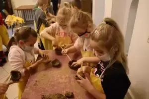 „Elfy” szybko przeszły z teorii do praktyki i miały okazję spróbować ulepić gliniane naczynie. Przedszkolaki z Ciechowa były bardzo zaangażowane w swoje prace, a każda z nich była niepowtarzalna. Każdy z dumą prezentował swoje dzieło. Dzieci zwiedzały także Muzeum Regionalne i usłyszały historię Środy Śląskiej oraz Skarbu Średzkiego.